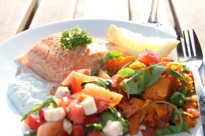 Salat með bökuðum kokteiltómötum