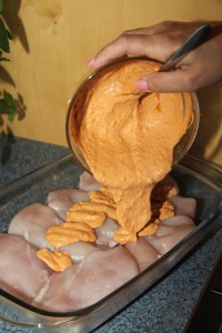 Blandið saman hráefnunum og hellið yfir kjúklingabringurnar. Veltið þeim vel upp úr sósunni og geymið í kæli. Því lengur því betra en yfirleitt liggur manni á (allavega mér!) þannig að 10-15 mínútur duga alveg! 🙂 Grillið svo á útigrilli þar til bringurnar eru tilbúnar. Einnig hægt að setja bringurnar inn í ofn í eldföstu móti því þá nýtist sósan enn betur þar sem að sósan verður eftir á botni mótsins. Hitið þá við 200 gráður í 30-35 mínútur eða þar til bringurnar eru tilbúnar.