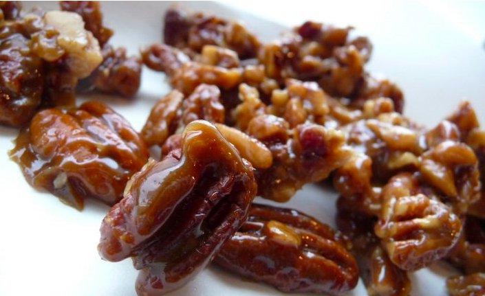 Ég myndi ekki sleppa karamelliseruðu pekanhnetunum, þær eru sjúklega góðar og það auðvelt að útbúa þær: