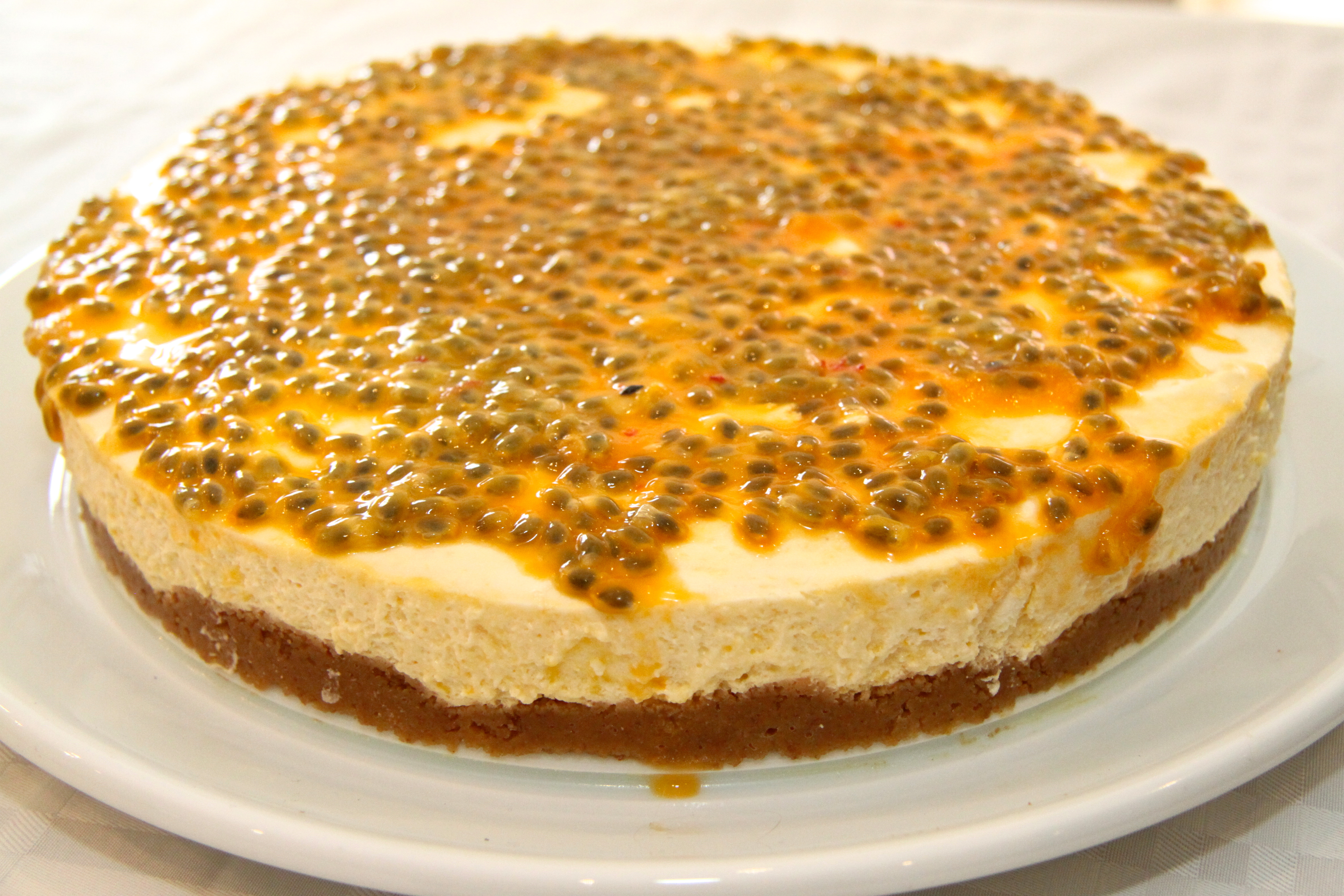 7. Ástaraldin skorin í tvennt, aldinið skafið innan úr þeim og því dreift yfir kökuna áður en hún er borin fram.