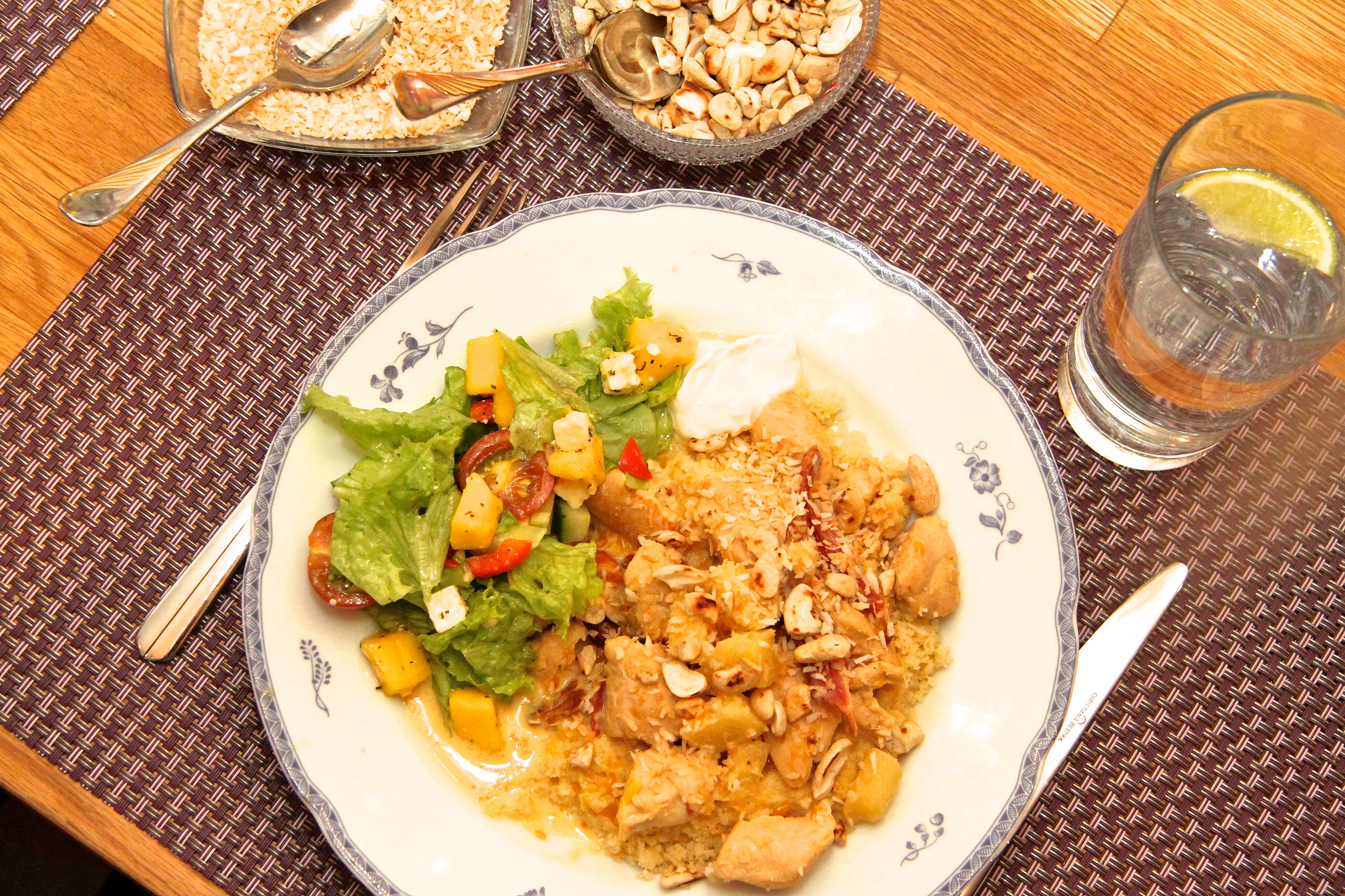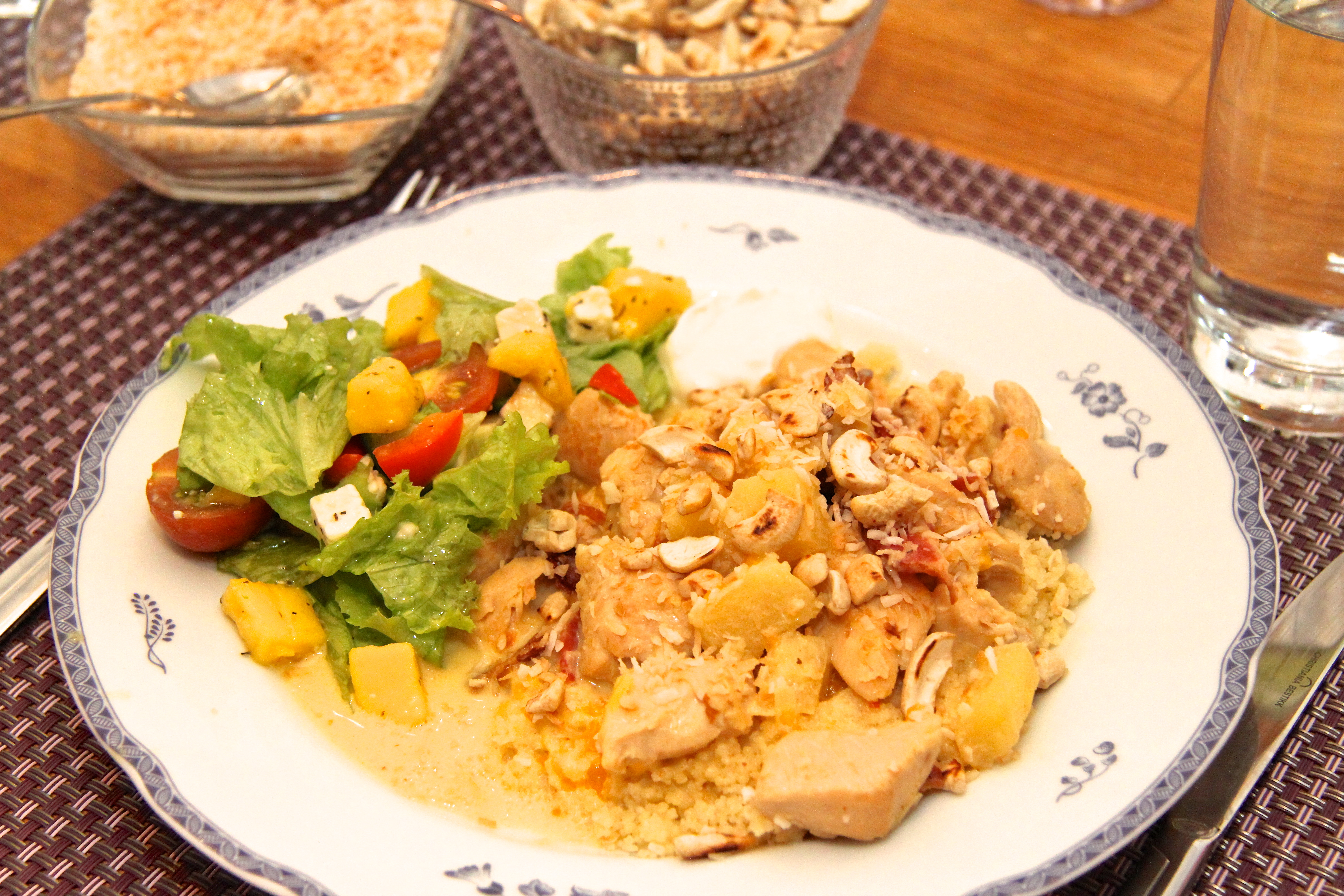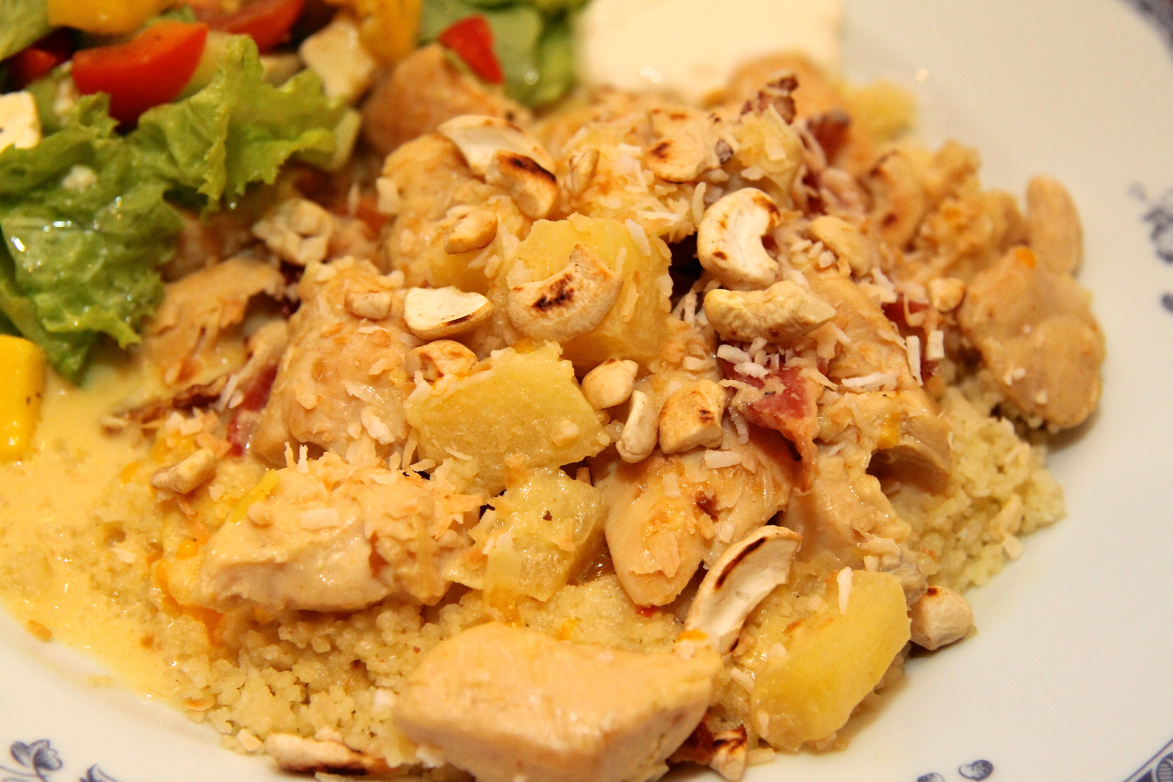 Kjúklingabringur eru kryddaðar með salti, pipar og jafnvel kjúklingakryddi (ég notaði Best á allt) og grillaðar á útigrilli eða snöggsteiktar á pönnu og svo settar í ofn þar til þær eru eldaðar í gegn. Þegar bringurnar hafa jafnað sig eftir eldun eru þær sneiddar niður.