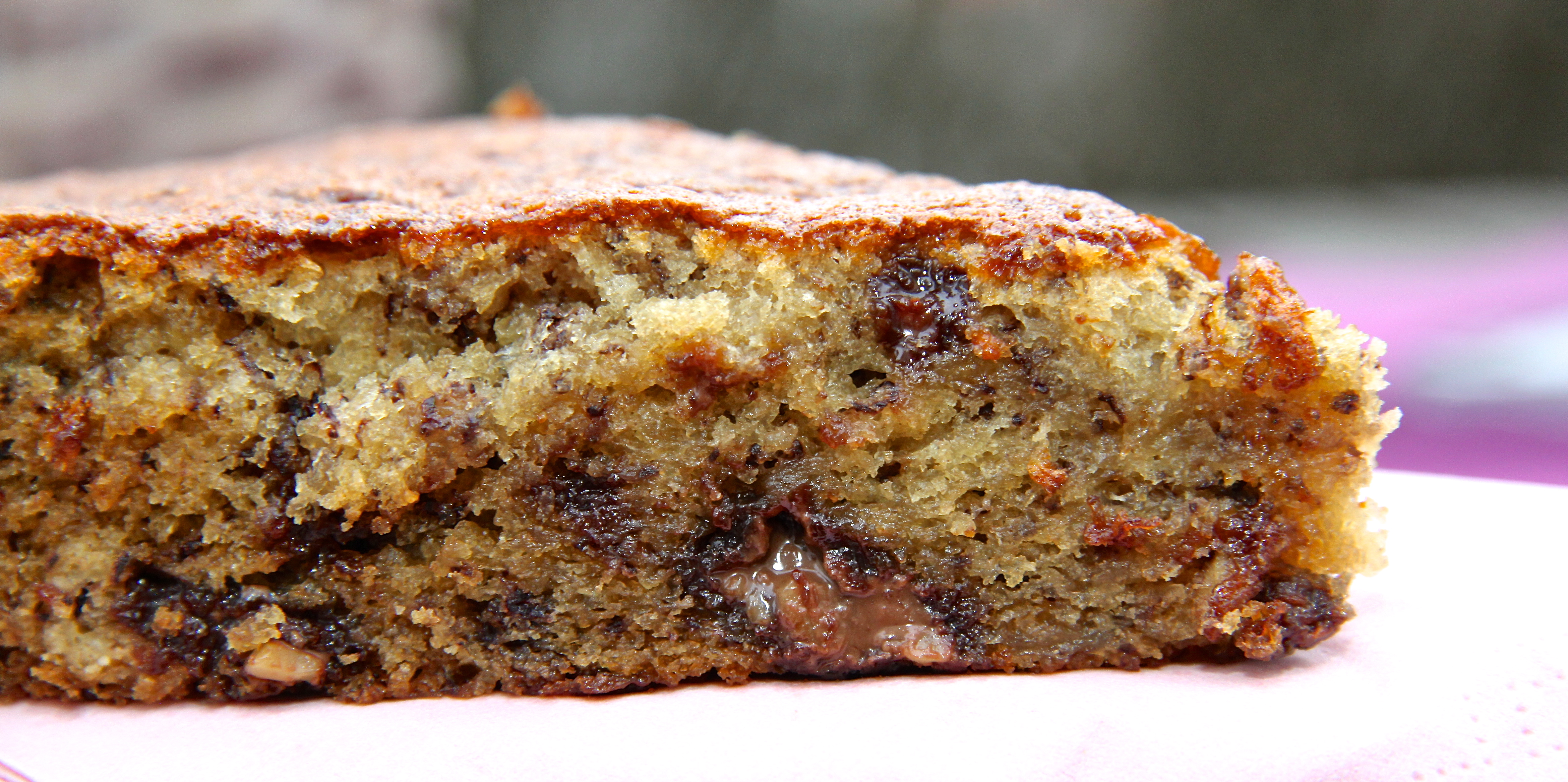 Ég fékk um daginn þessa rausnarlegu gjafakörfu frá Nóa og Siríus í uppskriftasamkeppni sem var á þeirra snærum. Í henni leyndist allskonar góðgæti sem hefur satt best að segja gengið ágætlega á! Í gær átti ég á þrjá banana sem voru orðnir ansi brúnir og ég ákvað að ég yrði að nýta þá í eitthvað gott. Ég gramsaði síðan ofan í gjafakörfunni, sem enn hefur að geyma ýmisskonar gúmmelaði og fann þar poka af suðusúkkulaðidropum frá Nóa og Siríus. Afraksturinn af samrunanum sem átti sér stað í framhaldinu var snilldin ein! Banana-súkkulaðikaka sem er afskaplega auðveld að baka og dásamlega ljúffeng.  Kakan var enn volg þegar ég bar hana fram og hún var auðvitað afar ljúffeng þannig. En ég náði að smakka síðasta bitann þegar hún var orðin köld og þá var hún eiginlega betri! Með dálitlum þeyttum rjóma þá er orðin til afar gómsætur eftirréttur.  Þið bara verðið að prófa þessa! Næst ætla ég að blanda bæði hvítu og dökku súkkulaði í kökuna.