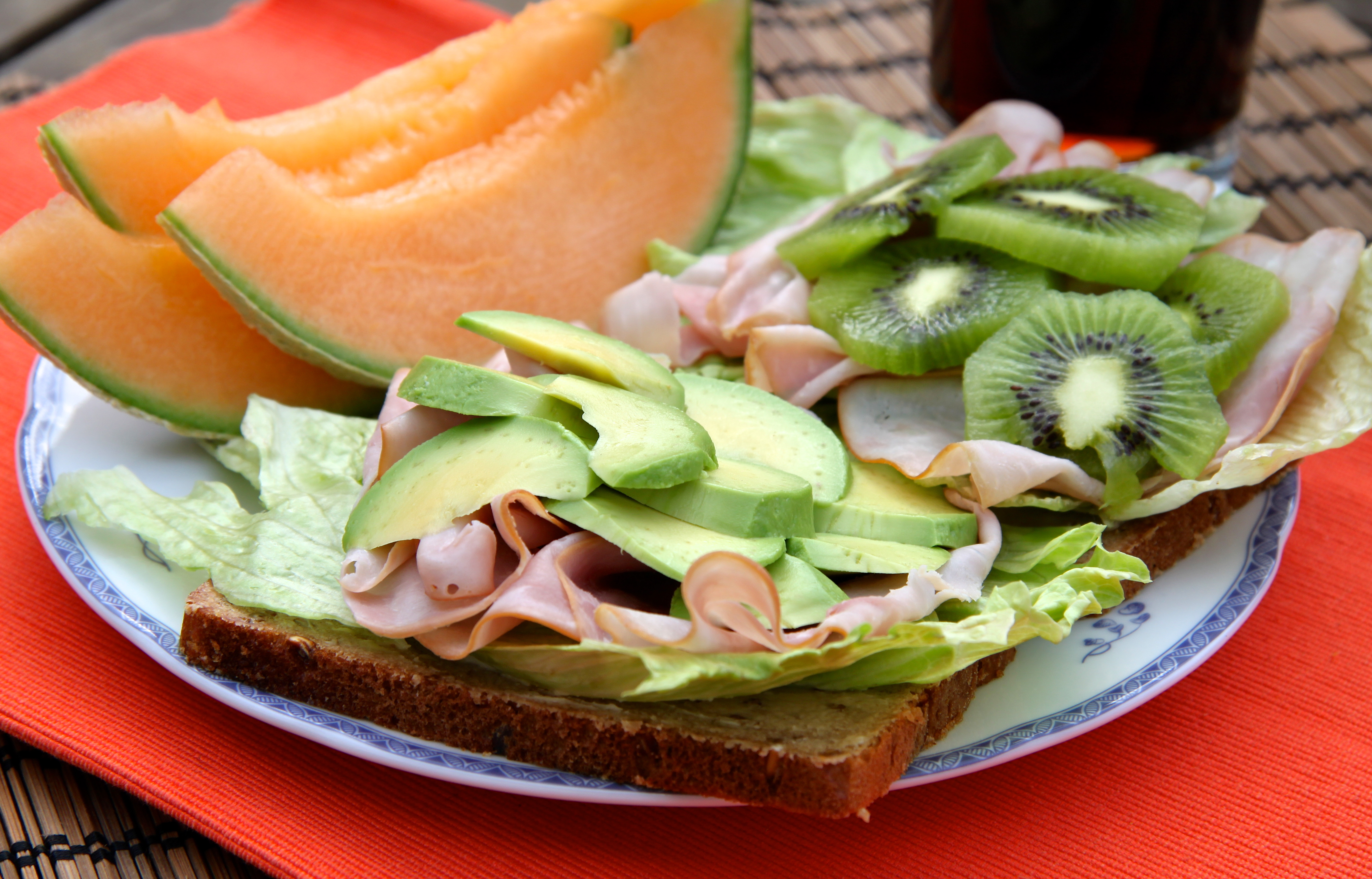 Í kaffitímanum fékk ég mér gróft brauð, Dinkelbergerbrauð, með skinku, káli, avókadó og kiwi. Ef þið hafið ekki smakkað gróft brauð með skinku, káli og kiwi þá eruð þið að missa af miklu! 🙂