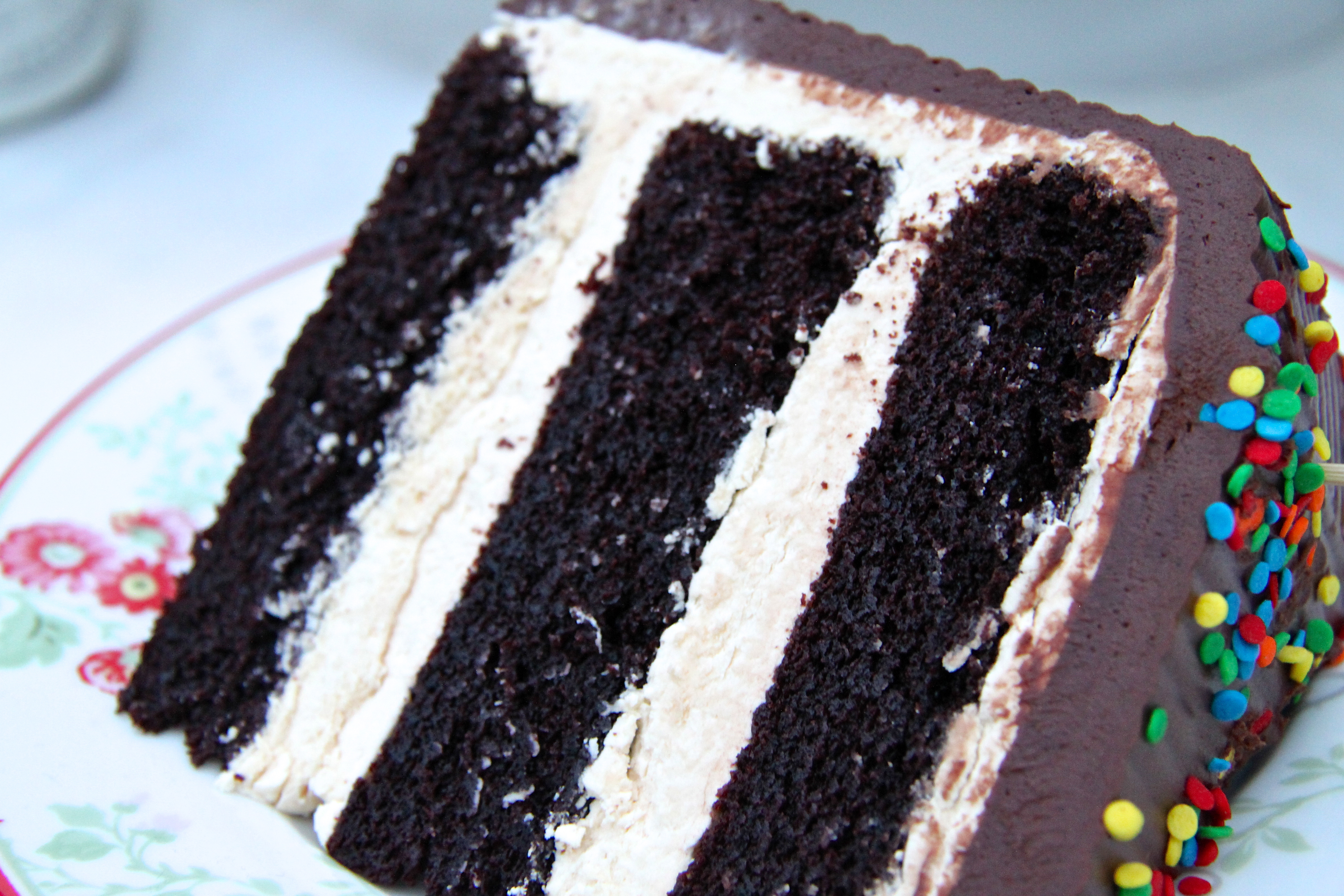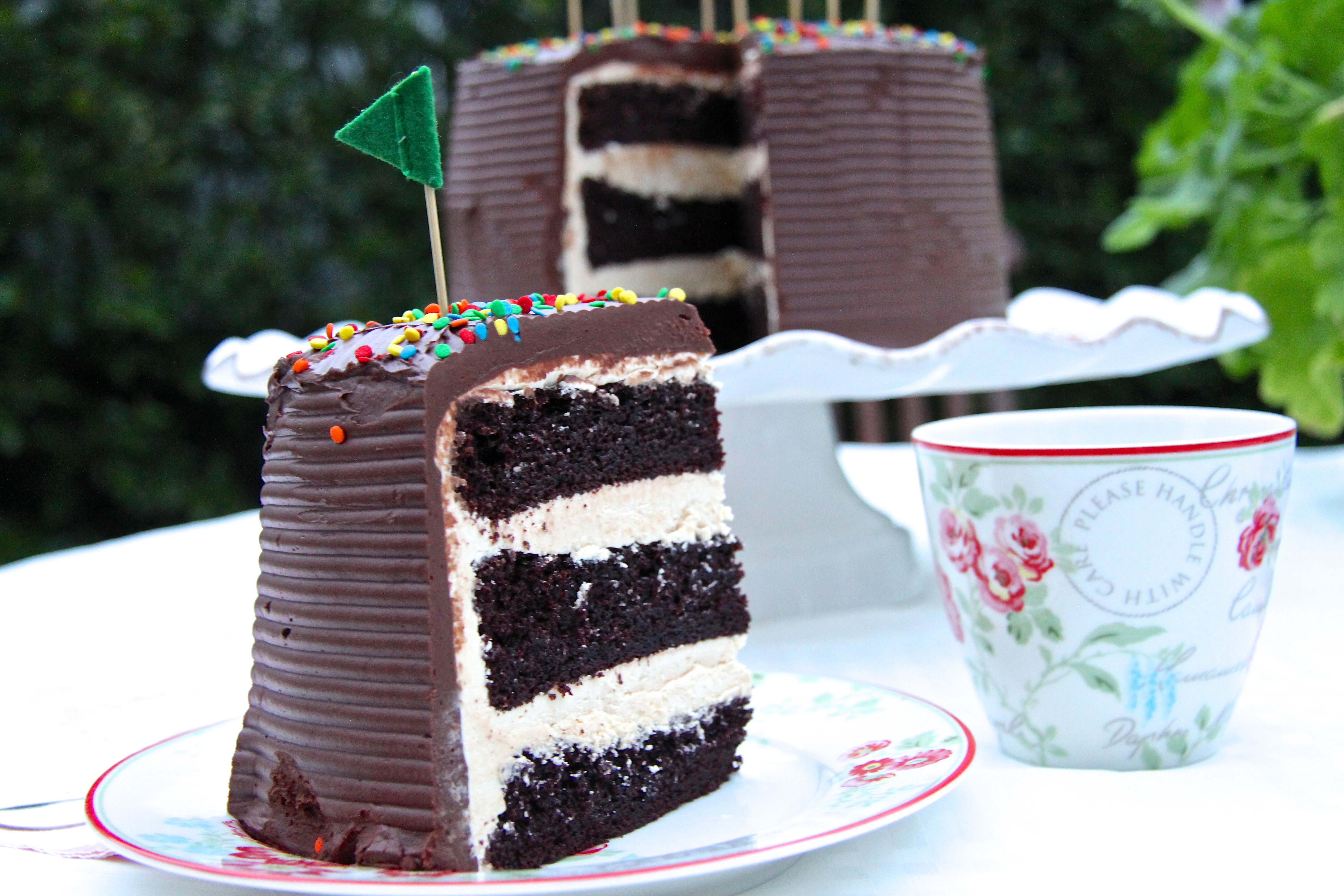 Í tilefni dagsins finnst mér við hæfi að koma með krassandi uppskrift af afmælisköku! Ég hef beðið spennt eftir rétta tilefninu að birta þessa frábæru uppskrift af einni þeirri bestu tertu sem ég hef smakkað – tilefnið getur ekki orðið betra en í dag! 🙂 Þetta er himnesk súkkulaðiterta með söltu karamellukremi. Kremið er draumkennt marengskrem með dulce de leche saltri karamellu og kakan umvafin þykku og girnilegu súkkulaðikremi. Sjálf kakan er yndislega bragðgóð og er næstum því eins og súkkulaðifrauð. Þið bara verðið að prófa þessa kræsingu! Það lítur kannski út fyrir að kakan sé flókin en hún er það í raun ekki, kannski dálítið tímafrek en algjörlega þess virði!