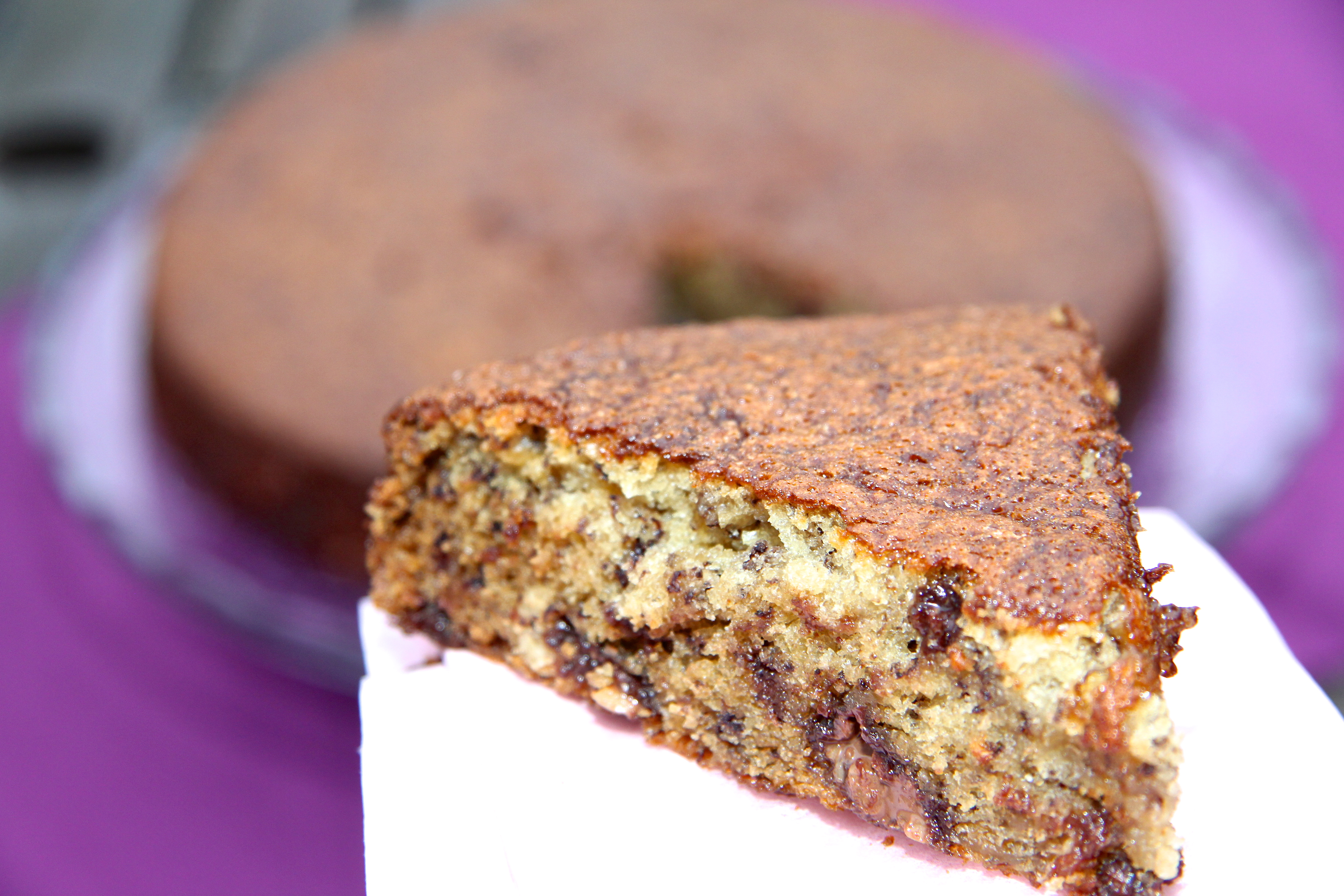 Banankakan með súkkulaði lætur ekki mikið yfir sér á mynd en er sjúklega góð.