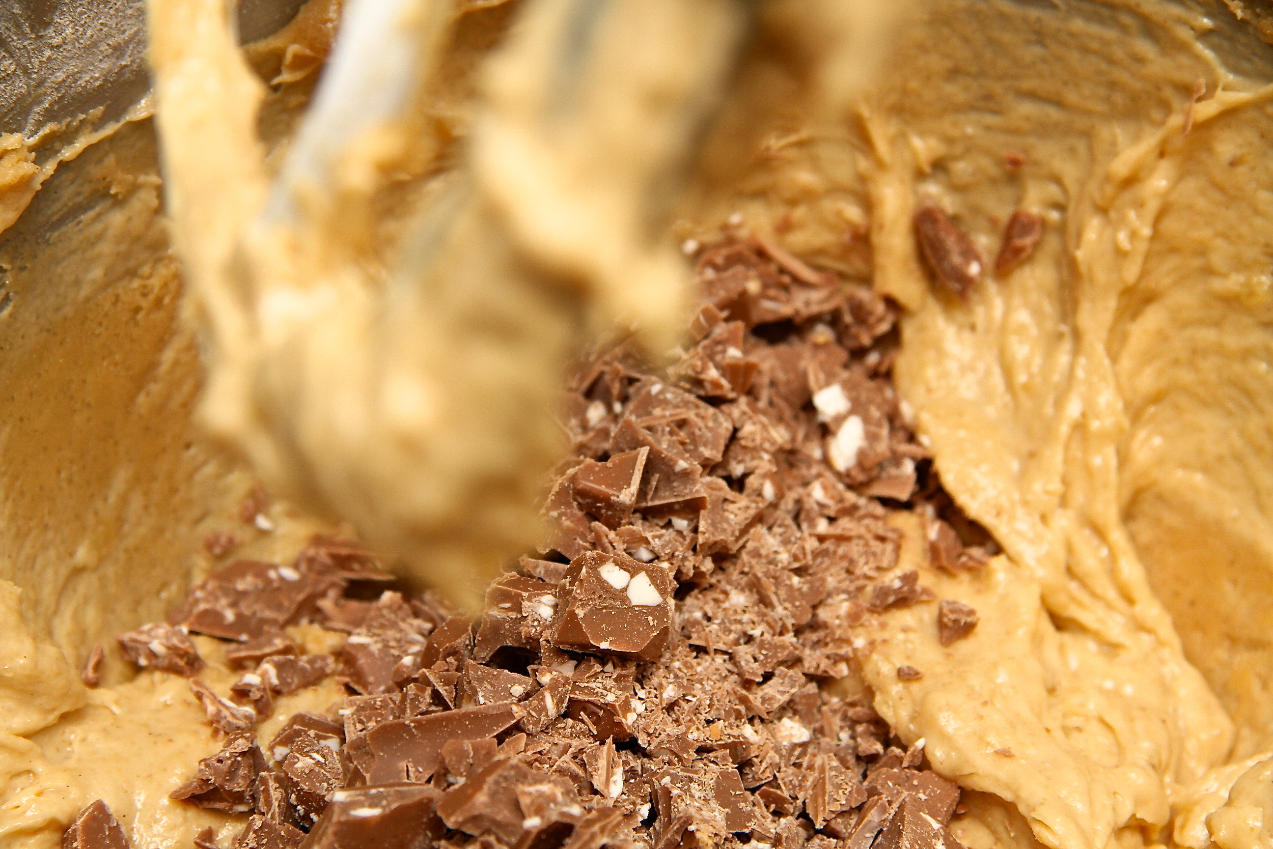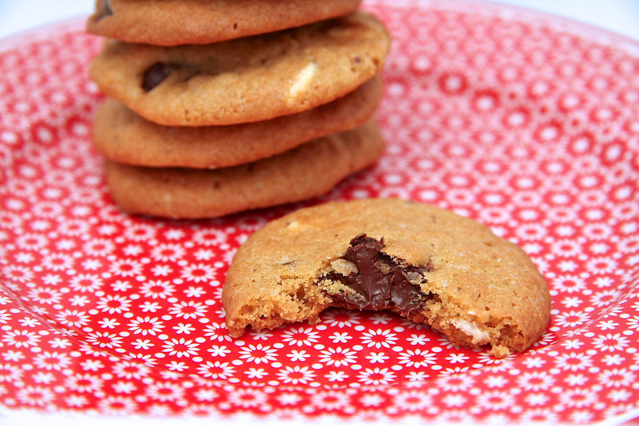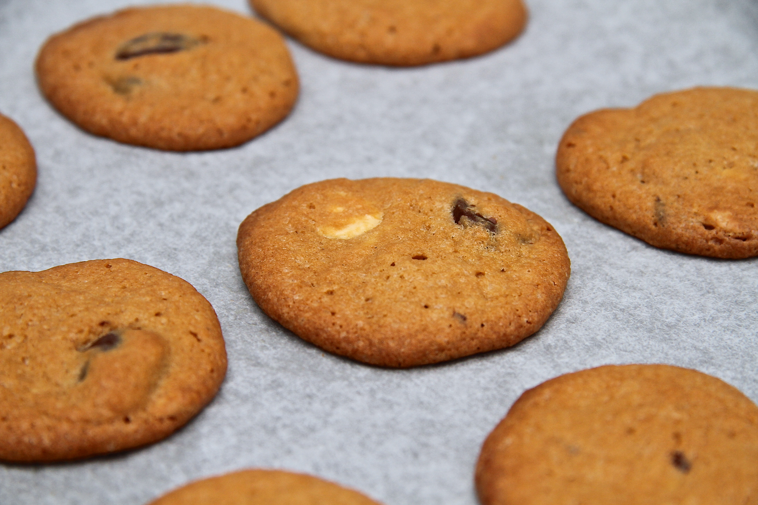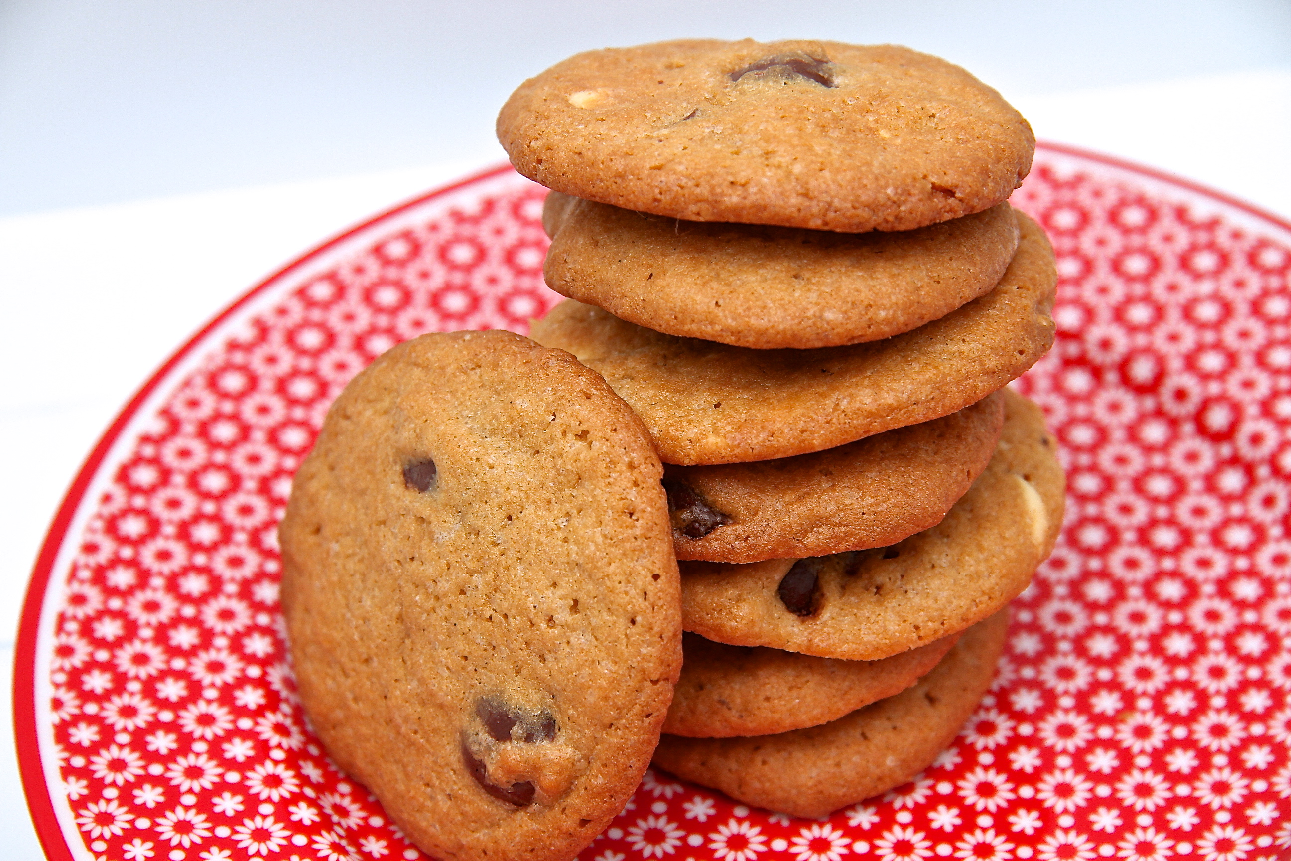 En ef ég sný mér nú að smákökunum sem eru uppskrift dagsins. Þegar ég var barn bakaði mamma allskonar gómsætar smákökutegundir eins og svo algengt var á þeim tíma. Loftkökur, vanilluhringi, hálfmána með sultu og fleiri tegundir, allir í fjölskyldunni áttu sér sínar uppáhalds smákökur. Kökurnar voru allar tryggilega geymdar í kökuboxum fram að jólum og við krakkarnir biðum óþreyjufull alla aðventuna eftir því að fá að gæða okkur á kræsingunum. Eftir að ég stofnaði til minnar eigin fjölskyldu hélt ég í hefðina og baka ýmisskonar smákökur á aðventunni. Snemma á aðventunni bökum við krakkarnir alltaf piparkökur sem við svo málum og skreytum saman auk þess sem ég fer í sörubaksturinn með mömmu og Ingu frænku. Þetta er þær kökur sem ég geymi fram að jólum ásamt jólagotti líkt og Bounty kúlur, Oreokúlur og öðru gotteríi. Annars baka ég ekki smákökur og safna í kökubox, mér finnst nefnilega smákökur bestar nýbakaðar. Þannig að öðru hvoru á aðventunni baka ég eina og eina tegund af smákökum sem að má, og hreinlega á, að borða heitar og nýbakaðar! Fjölskyldan lætur ekki segja sér það tvisvar og við eigum því litlar, notalegar jólastundir á aðventunni með nýbökuðum, volgum smákökum og mjólkurglasi. Í dag bjó ég til afskaplega góðar smákökur með súkkulaðibitum sem við gæddum okkur á. Þær eru stökkar að utan og mjúkar í miðjunni, alveg eins og góðar súkkulaðikökur eiga að vera.