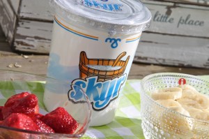 Mig langaði í dag að setja inn uppskrift að óskaplega einföldum eftirrétti en frábærlega góðum. Þessi réttur er dálítið í takti við annríki helgarinnar sem var að líða því þetta er réttur sem ég gríp oft til ef ég þarf að útbúa eftirrétt með engum fyrirvara. Það er best að bera fram vanilluís með þessum rétti en toppurinn finnst mér að senda eiginmanninn út í ísbúð á meðan ég útbý réttinn og bera svo fram með honum ljúffengan rjómaís beint úr vél í íssbúðinni!