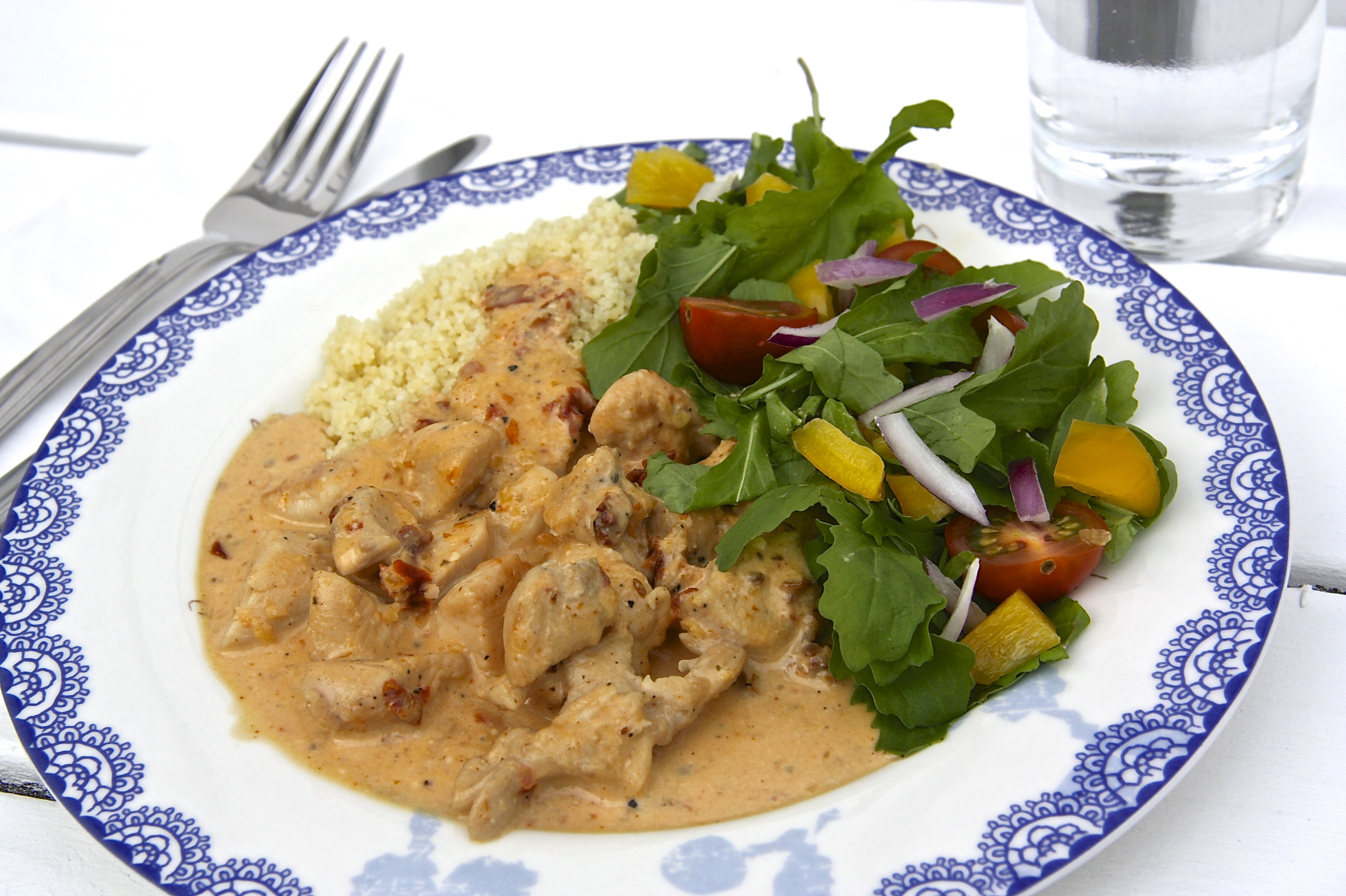 Uppskriftin sem ég ætla að gefa að sinni er mjög einföld en ofsalega góð. Mér finnst helsteiktur kjúklingur svo góður og passa svo vel sem sunnudagsmatur. Ég hef verið að nota heila kjúklinginn frá Rose Poultry, hann er mjög safaríkur og góður en svo hentar stærðin líka svo vel því hann er svo stór, ca. 1.6 kíló. Ég prófaði mig áfram með sósu með kjúklingnum og þessi sem ég gef uppskrift að hér að neðan sló í gegn hjá fjölskyldunni og hún var bókstaflega sleikt innan úr skálinni. Auk kjúklingsins og sósunnar útbjó ég ferskt salat og ofnbakaðar kartöflur og gulrætur – einföld og ljúffeng veislumáltíð!
