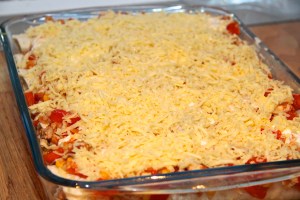 Um daginn eldaði ég þennan mexíkóska kjúklingarétt og mallaði eitthvað úr þeim hráefnum sem ég átti í ísskápnum. Ég hef ekki enn lært af reynslunni og tel mig alltaf muna hvað ég set í réttina án þess að skrifa það niður sem er auðvitað algjör vitleysa. Ég er varla staðinn upp frá matarborðinu þegar ég hef þegar steingleymt því öllu. Sem betur fer tók ég margar myndir af ferlinu að þessu sinni og gat því rifjað upp uppskriftina. Sem var eins gott! Þessi réttur sló nefnilega í gegn hér heima og við borðuðum öll óhóflega mikið af þessum rétti. Galdrahráefnið var ostur held ég, mikill ostur gerir þennan rétt ómótstæðilegan! 🙂 Þessi réttur verður sannarlega eldaður fljótt aftur hér á heimilinu.