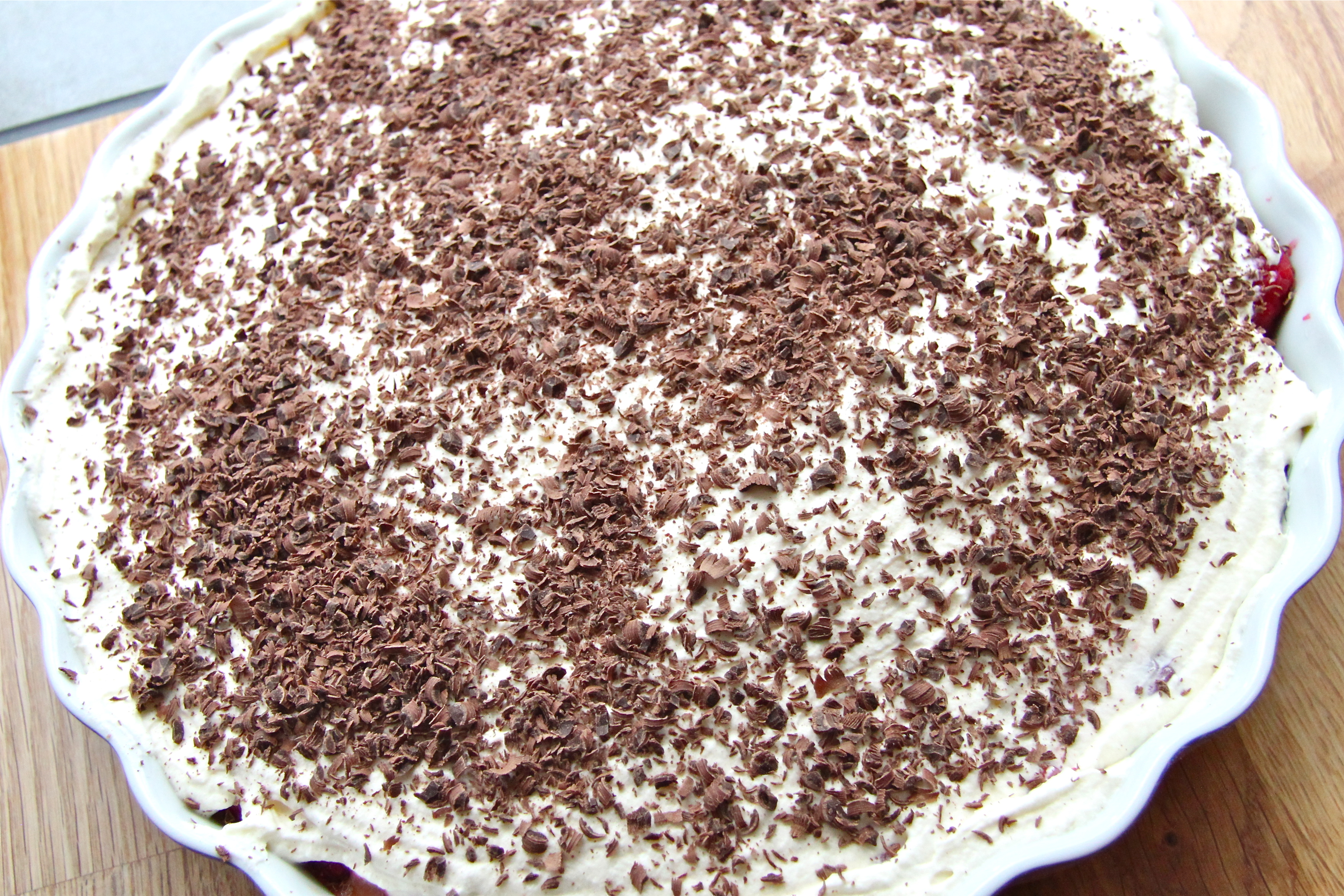 Í Englandi var farið að gera ,,Banoffee pie“ fyrir um það bil 40 árum. Það er baka með kexbotni, Dulce de leche karamellusósu, banönum og rjóma. ,,Banoffee“ er orð sem hefur meira að segja fest sig í sessi í ensku yfir allt sem bragðast eða lyktar eins og blanda af banönum og karamellu! Hér er ég með uppskrift af sambærilegri böku og það er vel hægt að skipta út karamellusósunni í þessari böku fyrir Dulce de leche karamellusósuna. Mig langaði að gera böku úr þessari Dulce de leche karamellusósu sem ég hafði keypt en langaði ekki að gera ,,Banoffee“ böku þar sem ég gerði sambærilega slíka böku nýlega. Ég ákvað því að nota hindber í stað banana. Karamellan er sæt en hindberin eru súrsæt og með mildum rjómanum þá getur þessi blanda varla klikkað!