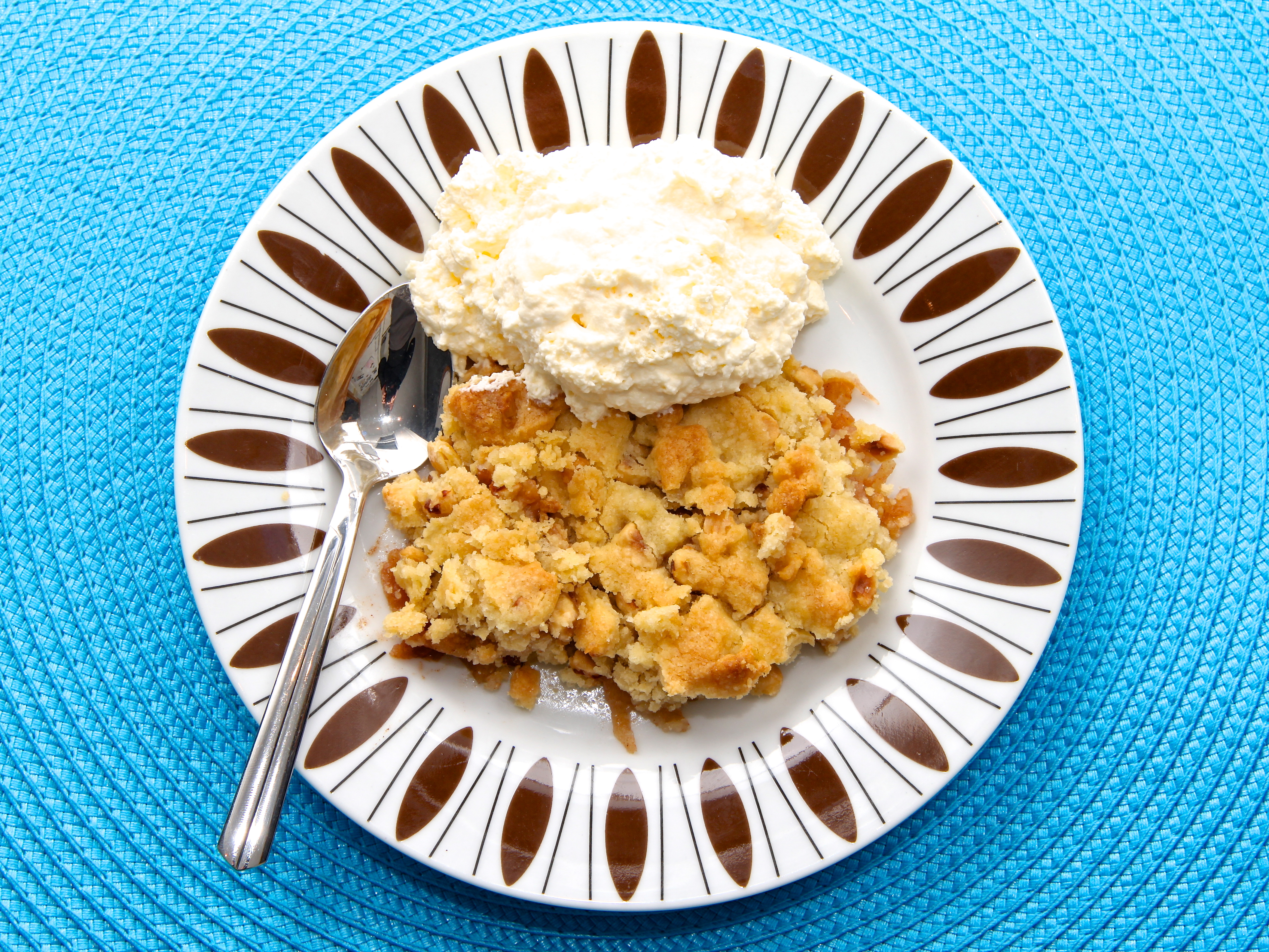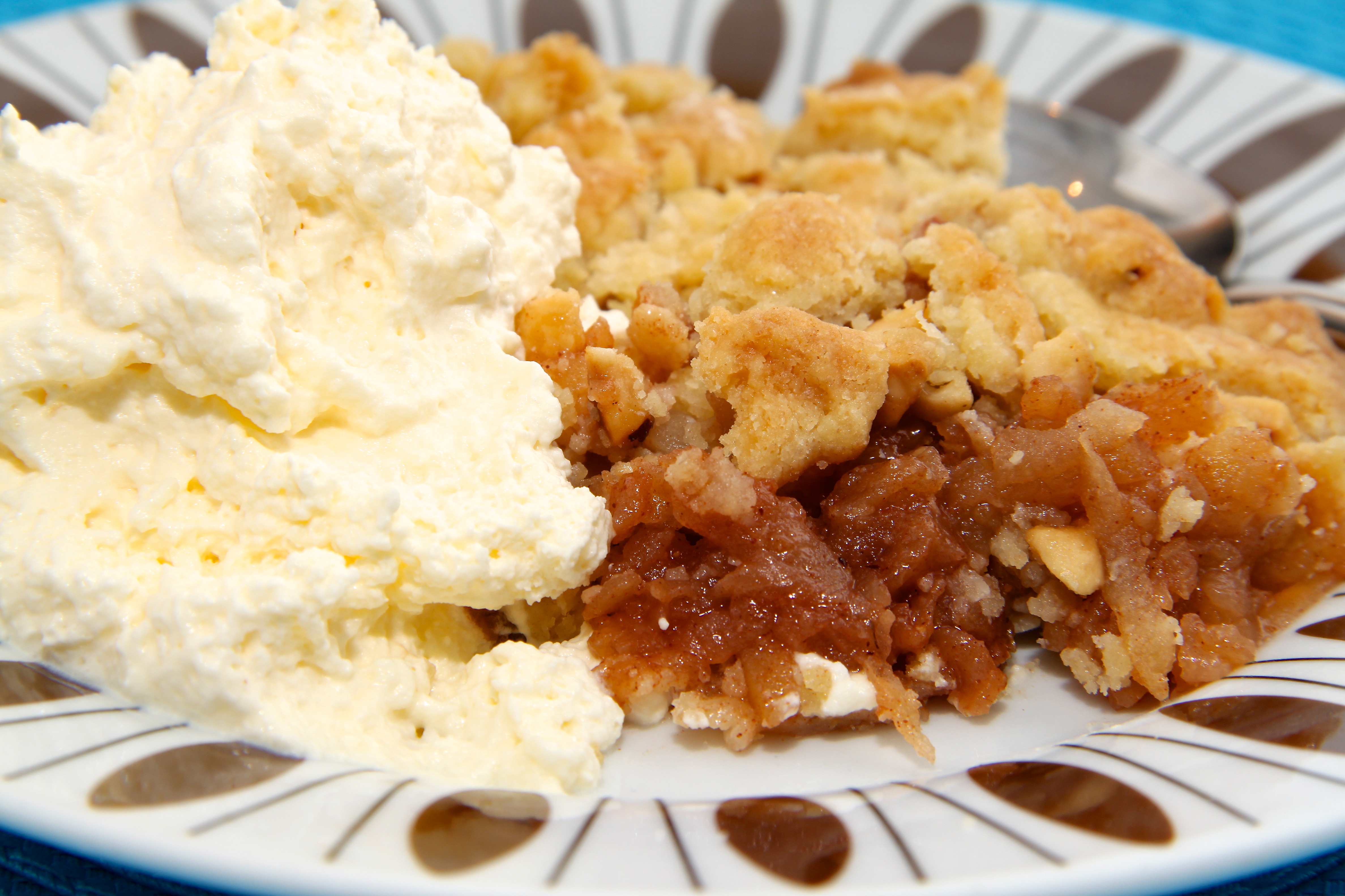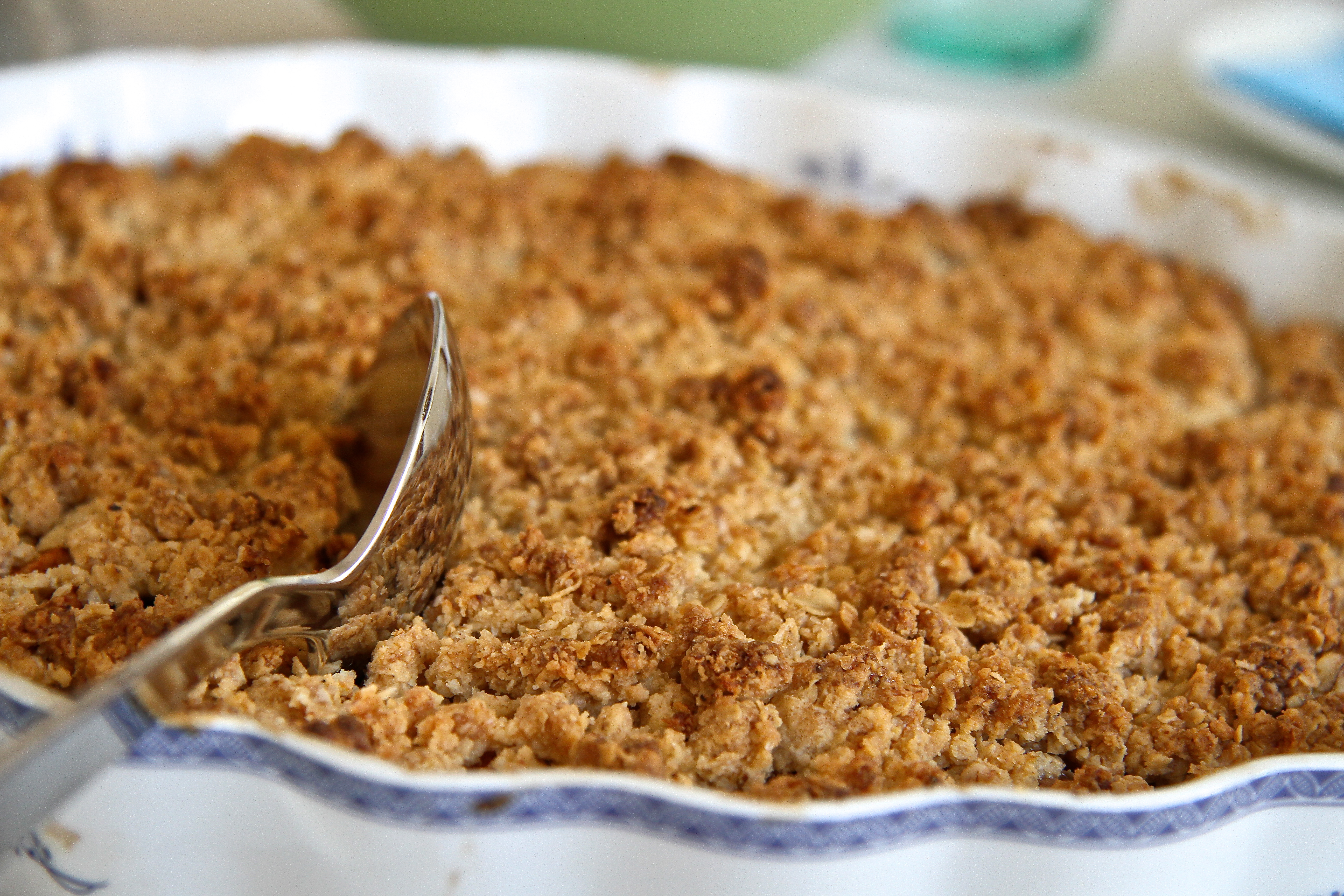 Hveiti, haframjöli, sykri og smjöri er blandað saman í höndunum þar til úr verður massi og honum deift yfir eplin. Bakað í ofni við 200 gráður í um það bil 30 mínútur eða þar til deigið er orðið gullinbrúnt. Borið fram heitt með þeyttum rjóma eða vanilluís.