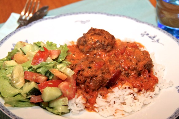 Um síðustu helgi hélt stóra stelpan mín upp á tvítugsafmælið sitt. Ég keypti hluta af veitingunum frá Osushi og bjó til eitthvað af þeim sjálf. Það var dálítið vatnsmelónuþema í gangi, við gerðum vatnsmelónu mojito sem var víst ákaflega góður drykkur. Hann er gerður úr Bacardi Melon (romm með vatnsmelónubragði), lime, vatnsmelónu, sírópi og fullt af ferskri myntu – ég set inn uppskriftina hér við tækifæri. Einn af þeim matréttum sem ég bjó til voru kjötbollur með asískri sósu. Ég gerði þær litlar og notaði þær sem smárétt en í raun er ekkert því til fyrirstöðu að búa til máltíð úr þeim og hafa þá til dæmis hrísgrjón með. Myndirnar voru teknar í miklum flýti og eru ekkert til að hrópa húrra fyrir en ekki láta þær fæla ykkur frá! 🙂