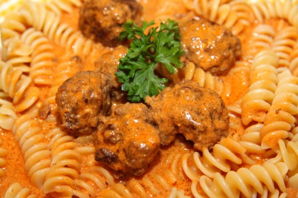 Um síðustu helgi hélt stóra stelpan mín upp á tvítugsafmælið sitt. Ég keypti hluta af veitingunum frá Osushi og bjó til eitthvað af þeim sjálf. Það var dálítið vatnsmelónuþema í gangi, við gerðum vatnsmelónu mojito sem var víst ákaflega góður drykkur. Hann er gerður úr Bacardi Melon (romm með vatnsmelónubragði), lime, vatnsmelónu, sírópi og fullt af ferskri myntu – ég set inn uppskriftina hér við tækifæri. Einn af þeim matréttum sem ég bjó til voru kjötbollur með asískri sósu. Ég gerði þær litlar og notaði þær sem smárétt en í raun er ekkert því til fyrirstöðu að búa til máltíð úr þeim og hafa þá til dæmis hrísgrjón með. Myndirnar voru teknar í miklum flýti og eru ekkert til að hrópa húrra fyrir en ekki láta þær fæla ykkur frá! 🙂