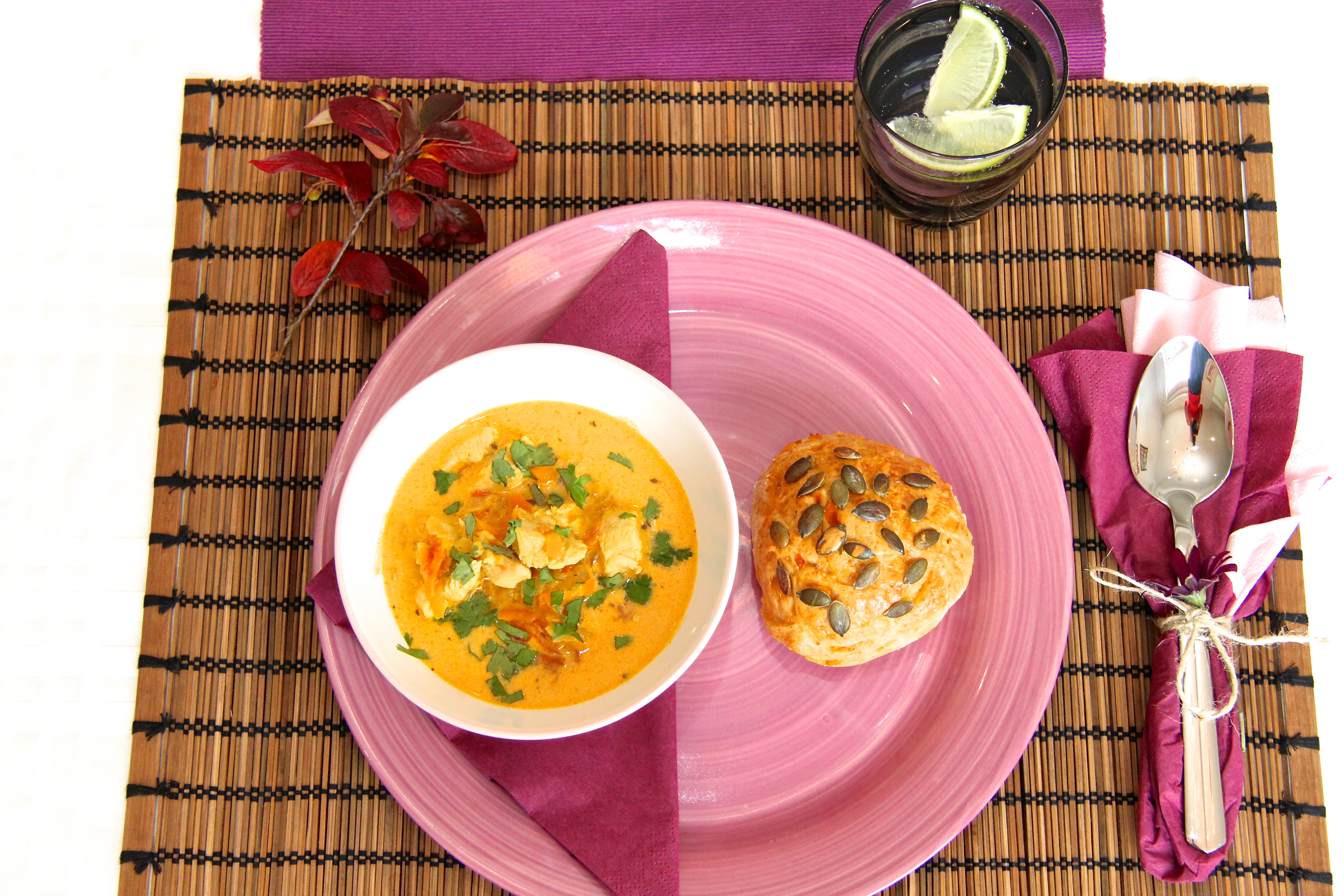 Ég er voðalega spennt að setja þessa uppskrift inn í dag. Þessi tælenska kjúklinga- og sætkartöflusúpa er algjört æði! Ein sú einfaldasta súpa sem ég hef gert en með þeim allra bestu. Ég mæli algjörlega með þessari! 🙂
