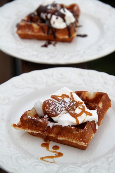 Ég notaði hér um bil sömu uppskrift og ég nota fyrir venjulegar vöfflur en notaði meira smjör. Vöfflurnar urðu rosalega góðar og í raun ekkert líkar þeim sem bakaðar eru í vöfflujárni. Bragðið var það sama en áferðin allt önnur. Þær eru töluvert þykkari og minna á belgískar vöflur. Með því að baka vöfflurnar í þessum formum verða þær stökkar að utan og mjúkar og djúsí að innan. Vöfflurnar slógu algjörlega í gegn hjá öllum börnunum fimm sem sögðu öll sem eitt að þessar vöfflur væru mikið betri en hefðbundnar vöfflur. Ég verð að vera sammála þeim, þetta voru dásamlega góðar vöfflur og afskaplega auðvelt að baka þær. Ég er strax farin að upphugsa fleiri leiðir til þess að nota þessi form. Spenntust er ég fyrir því að prófa að baka brownies í formunum. Það yrði örugglega dúndur eftirréttur sem væri gaman að skreyta og bera fallega fram. Einnig væri sniðugt að nota gerdeig eins og notað er í belgískar vöfflur og gera ósætar vöfflur með kannski beikoni, ostum eða einhverju slíku. Möguleikarnir eru býsna margir!