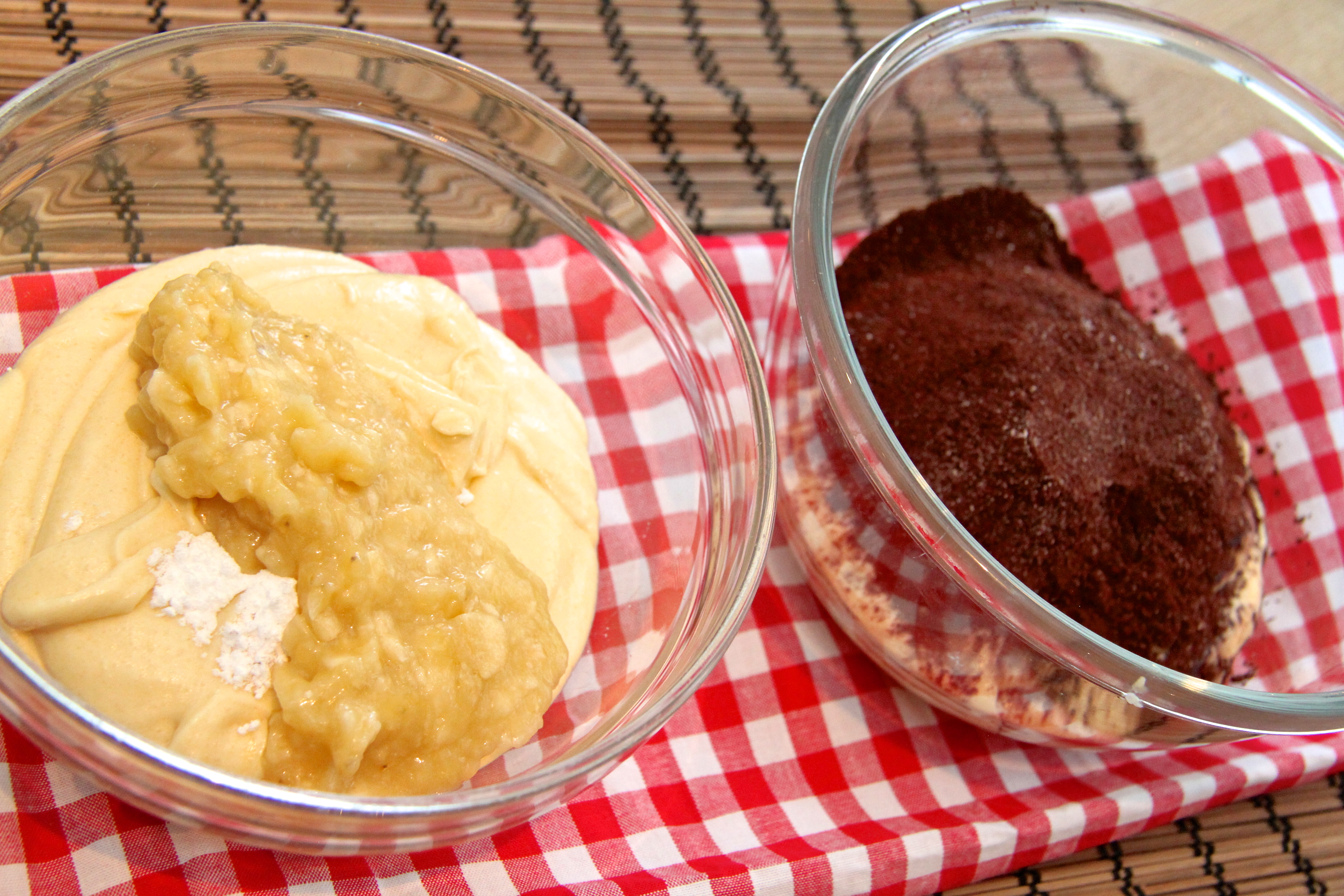 Ofn hitaður í 200 gráður við undir og yfirhita. Egg, sykur, olía og brætt smjör hrært saman. Því næst er hveiti og salti bætt út í og hrært saman við deigið. Þá er deiginu skipt í tvo jafna hluta. Kakói og vanillusykri er sigtað út í annan hlutann og blandað varlega saman við deigið. Banana og vanillusykri er bætt út hinn hlutann og blandað vel saman við deigið.