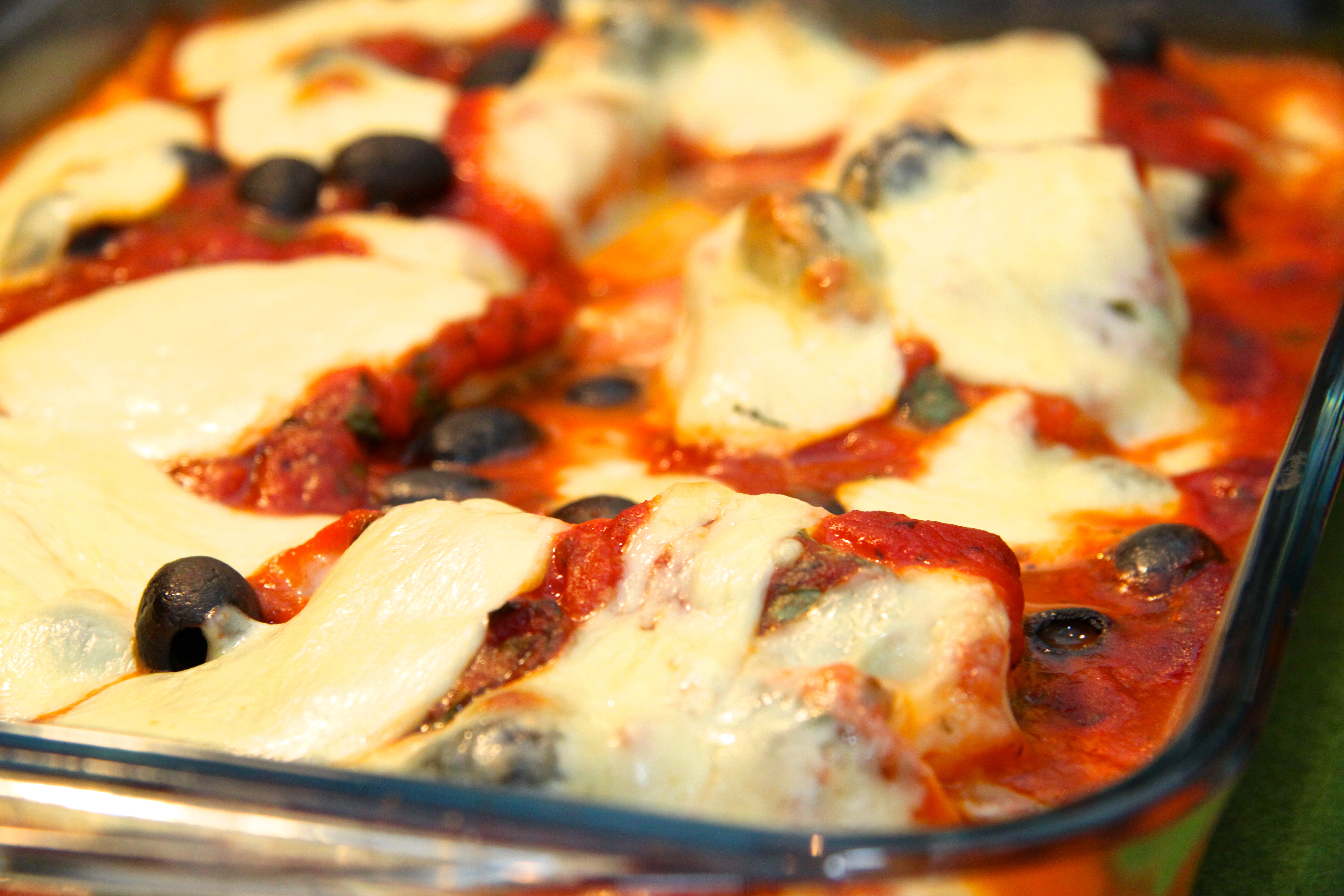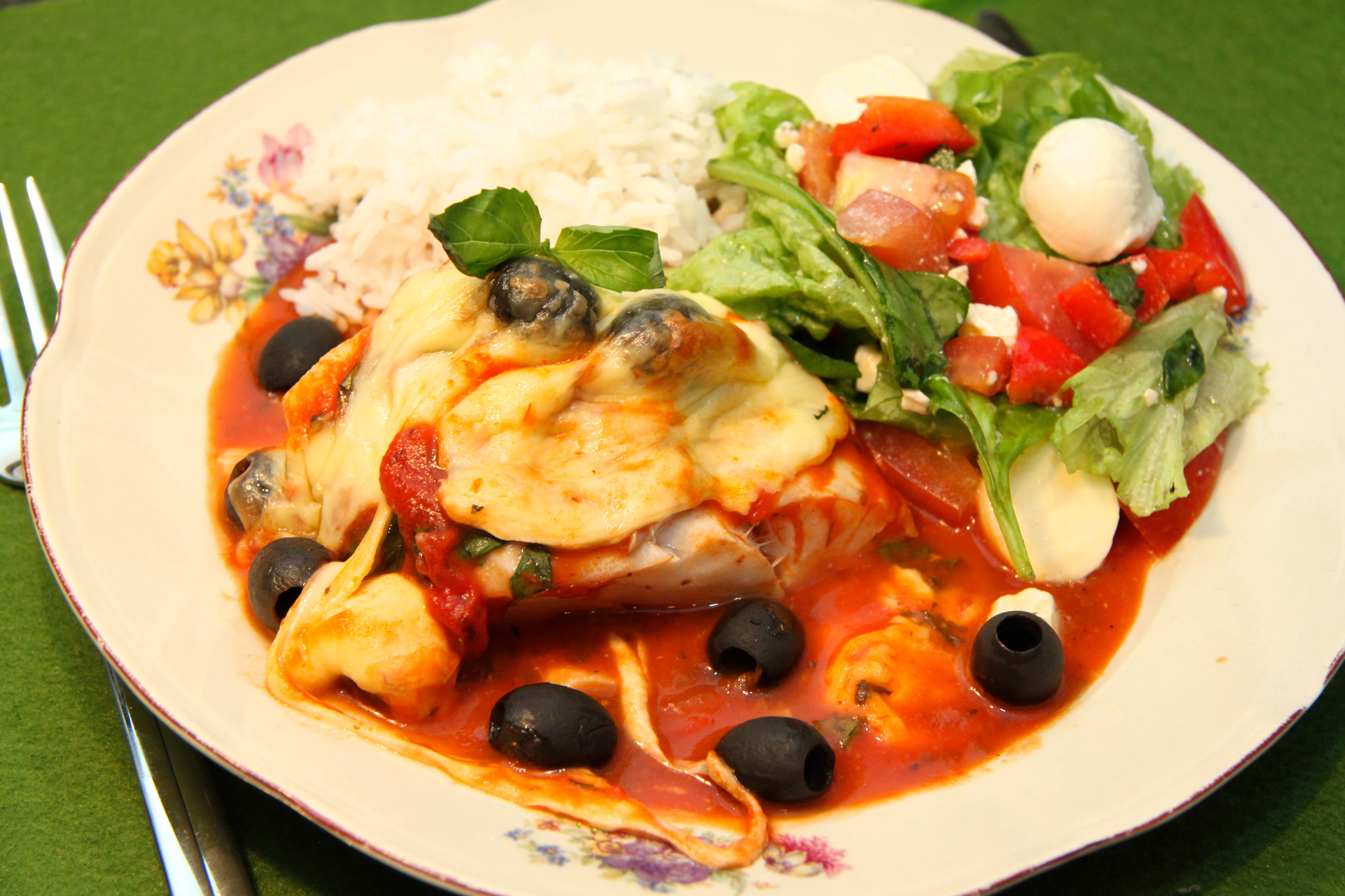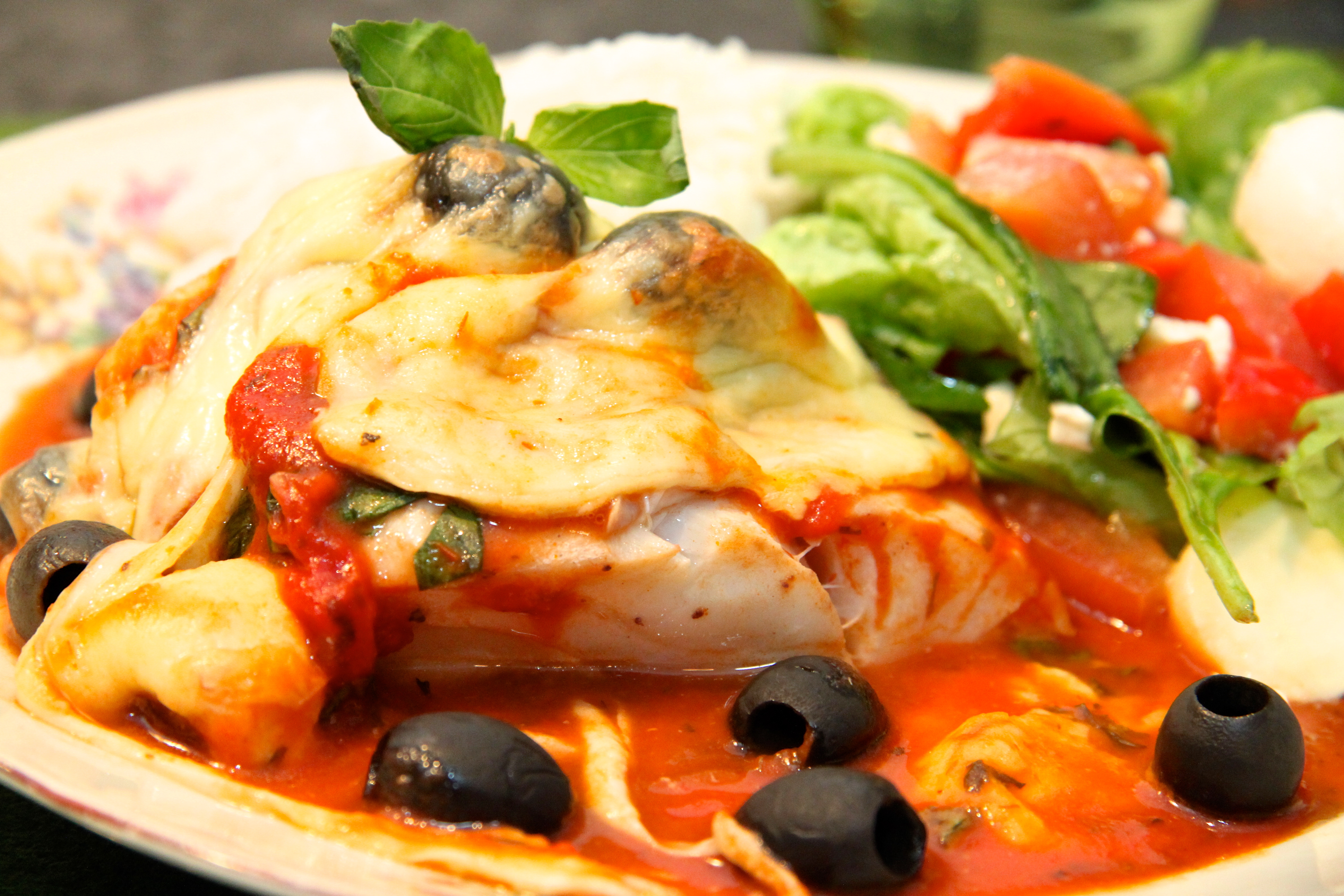 Eggi er blandað saman við mozzarella ostinn og því næst er honum dreift yfir réttinn. Hitað í ofni sem er stilltur á grill við 200 gráður í um það bil 15 mínútur eða þar til osturinn hefur náð lit og fiskurinn er eldaður í gegn.